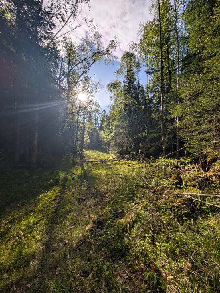 Hiking deeper into the woods with my new planned route starting to navigate firstly with physical map and my physical compass. It was also a beautiful experience of hiking rich surroundings of nature at different kind of paths feeling confident about the direction.